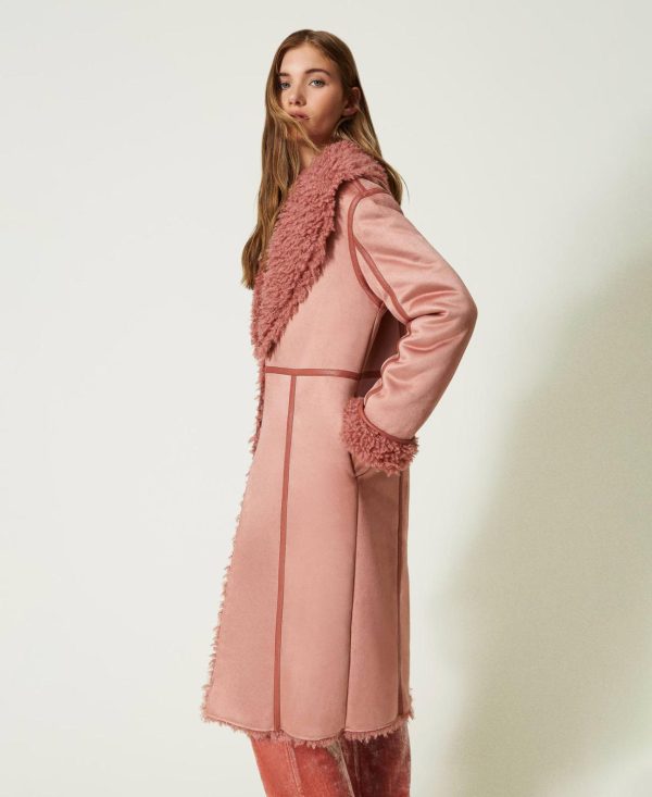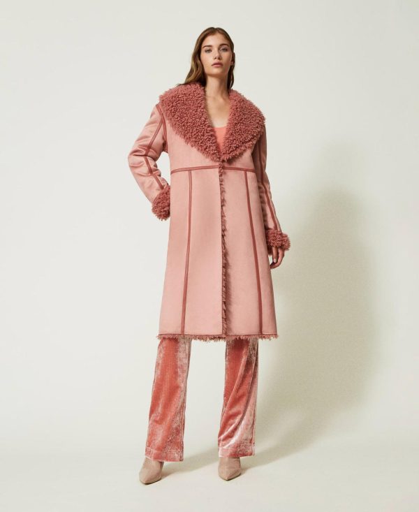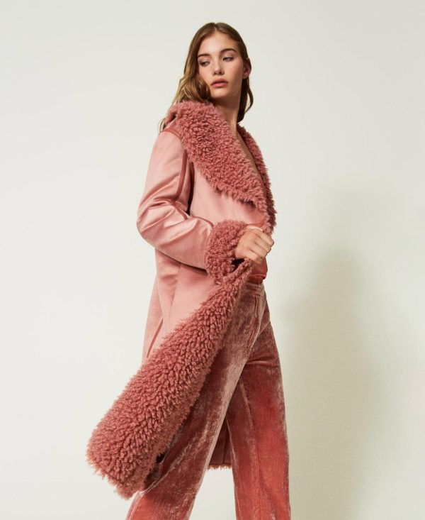 Twinset Milano Cappotti E Trench | Cappotto Effetto Scamosciato Con Faux Fur Rosette Donna