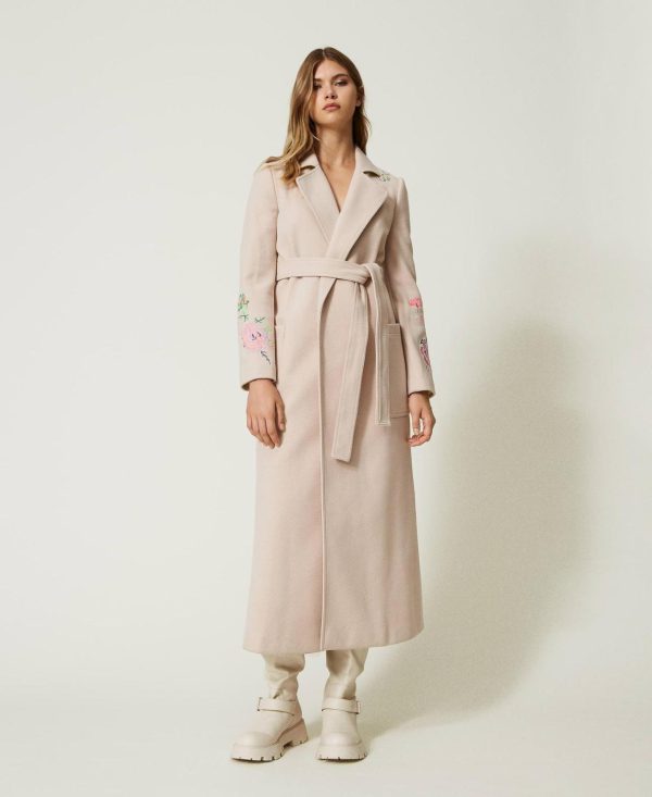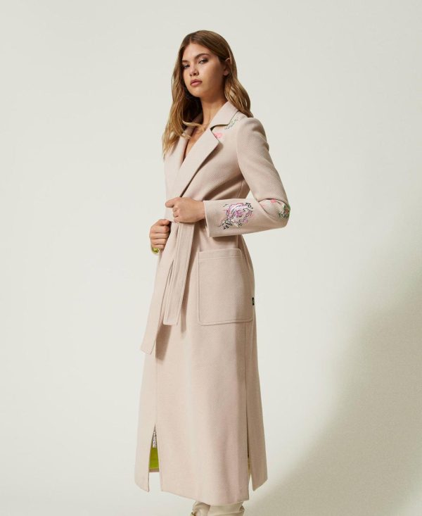 Twinset Milano Cappotti E Trench | Cappotto MYFO In Panno Con Ricami Gray Morn Donna
