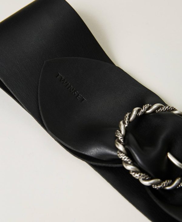 Twinset Milano Cinture | Cintura Fusciacca Con Fibbia A Intreccio Nero Donna