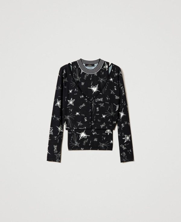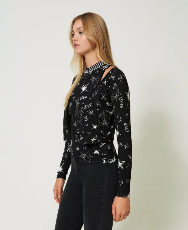 Twinset Milano Maglie E Cardigan | Cardigan E Top In Maglia Stampata Black Graffiti Donna