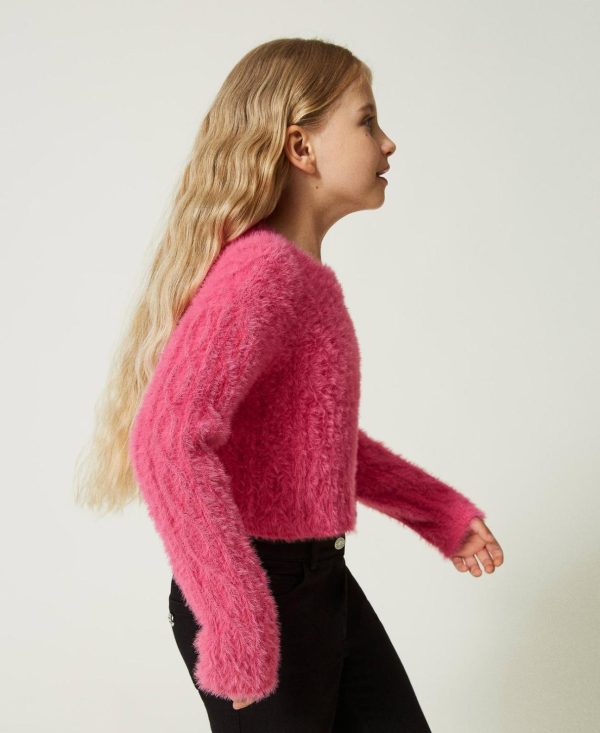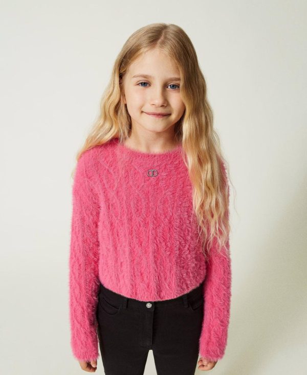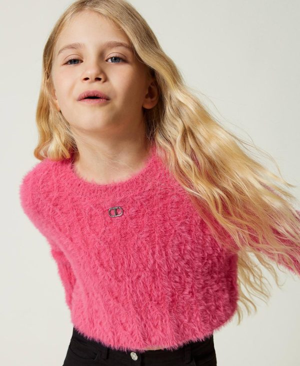 Twinset Milano Maglie E Cardigan | Maglia Effetto Peluche Con Oval T Pink Fluo Donna