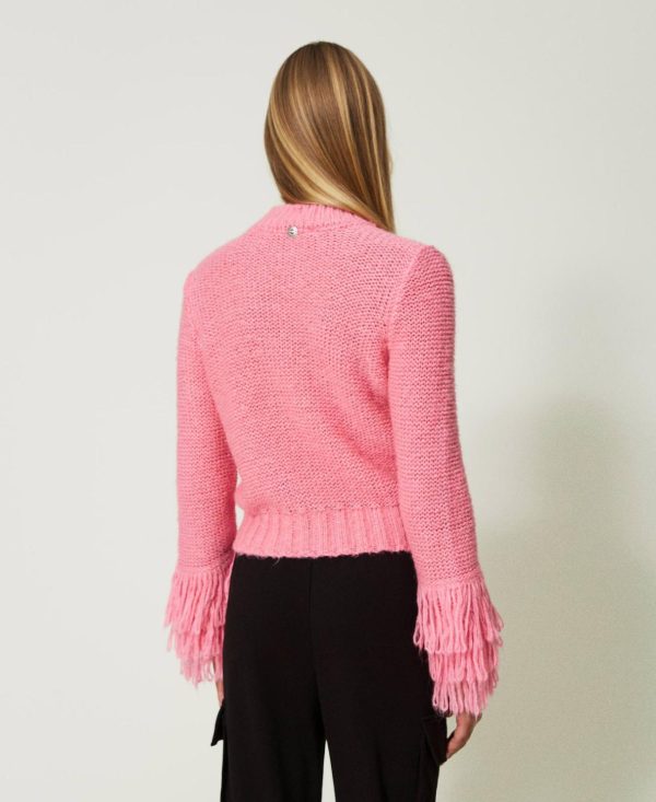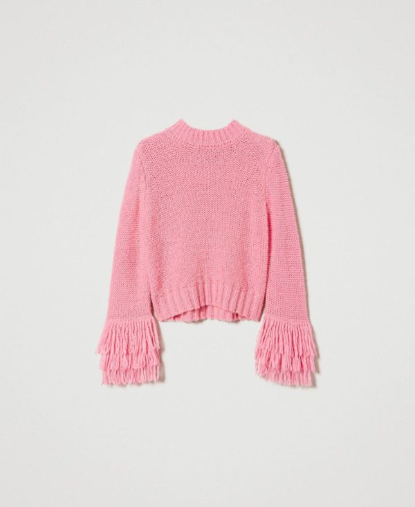 Twinset Milano Maglie E Cardigan | Maglia Regular Con Frange Rosa “wild Orchid” Donna