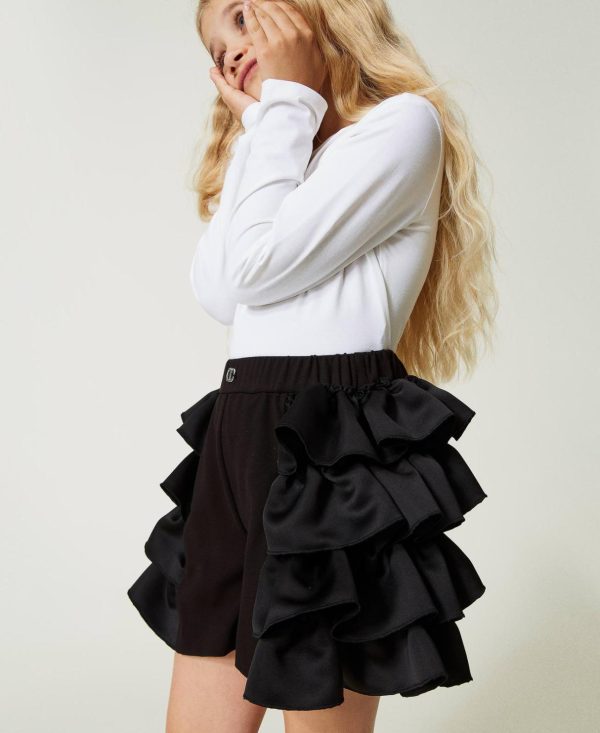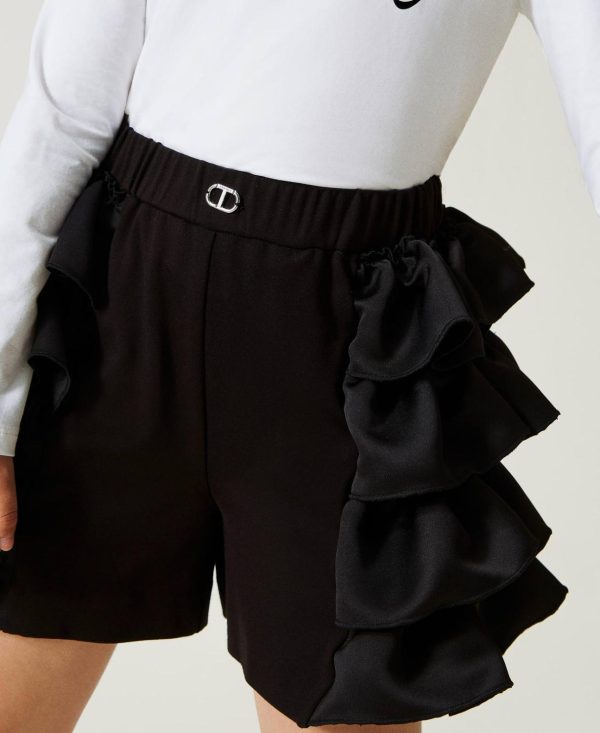 Twinset Milano Pantaloni E Jeans | Shorts Con Balze In Duchesse Nero Donna