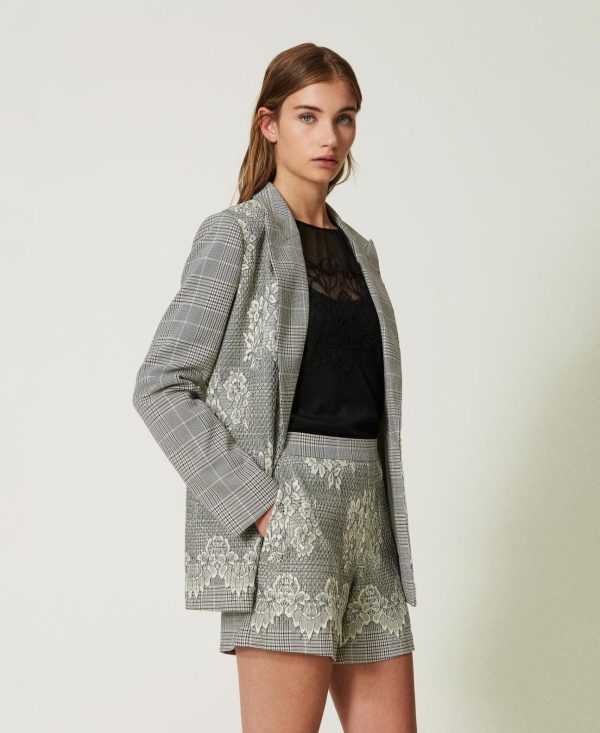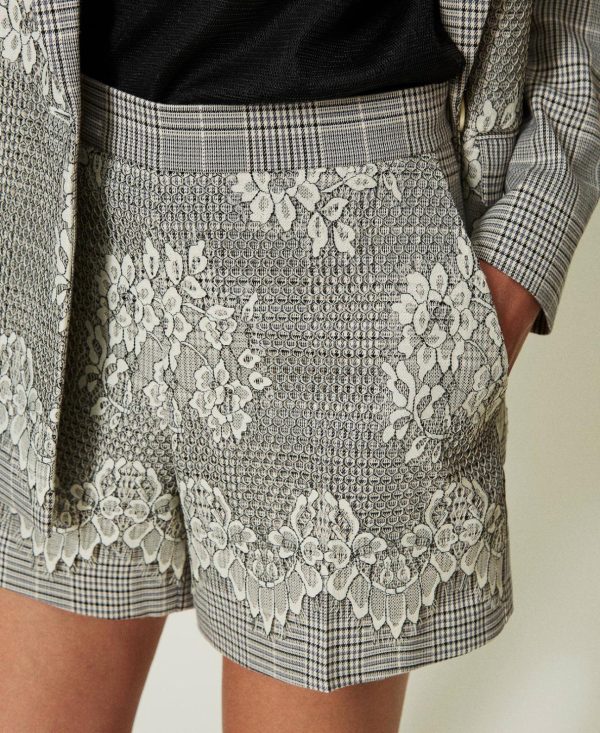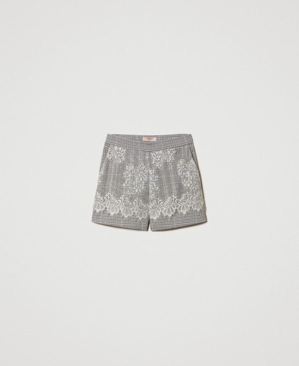 Twinset Milano Pantaloni | Shorts In Principe Di Galles Con Pizzo Check Neve/Nero Donna