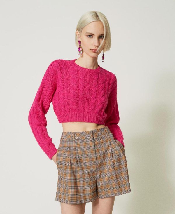 Twinset Milano Pantaloni | Shorts In Principe Di Galles Marrone “cinnamon” Principe Di Galles Donna