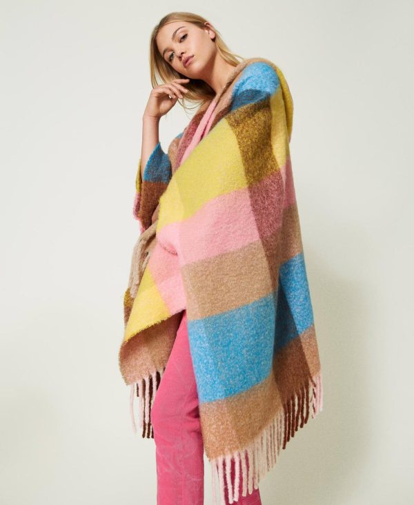 Twinset Milano Poncho | Poncho In Panno Check Multicolor Check Fuchsia/Giallo “golden Kiwi” Donna
