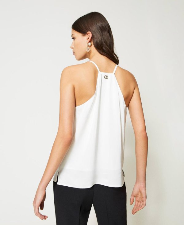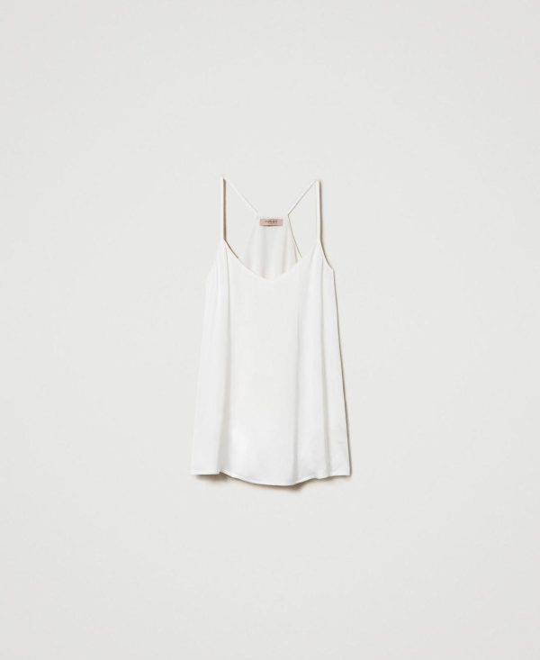 Twinset Milano T-Shirt E Top | Top In Raso Con Spalline Bianco Neve Donna