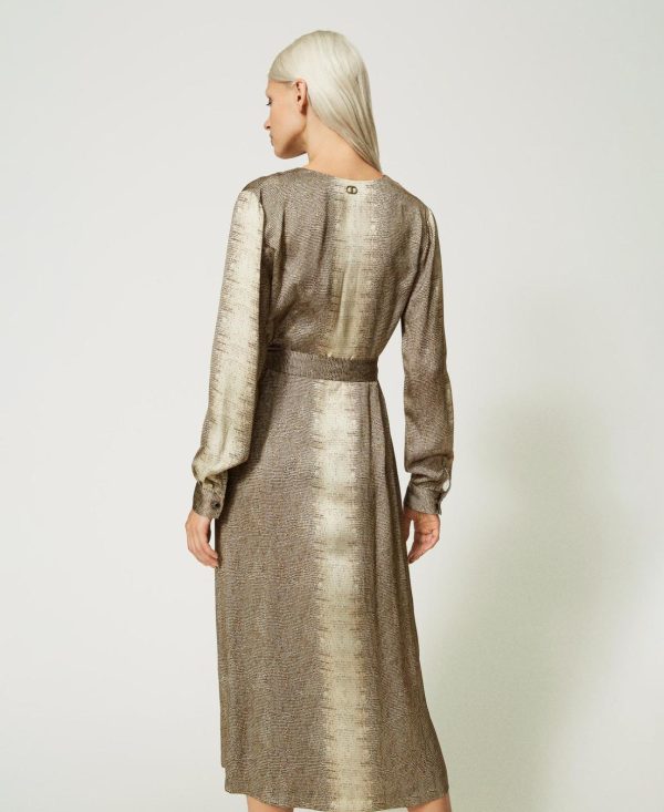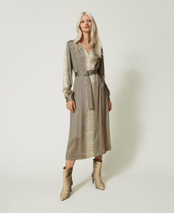 Twinset Milano Vestiti Lunghi | Abito Lungo In Raso A Stampa Lizard Stampa Lizard Donna